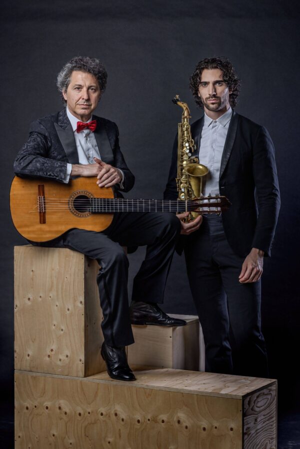 Un concerto che propone la suggestiva e unica fusione delle timbriche del saxofono e della chitarra, con la volontà di esplorare mondi musicali lontani tra loro, sia per stile che per colore sonoro: dalle arie rinascimentali e barocche alle canzoni d’autore italiane del ‘900.